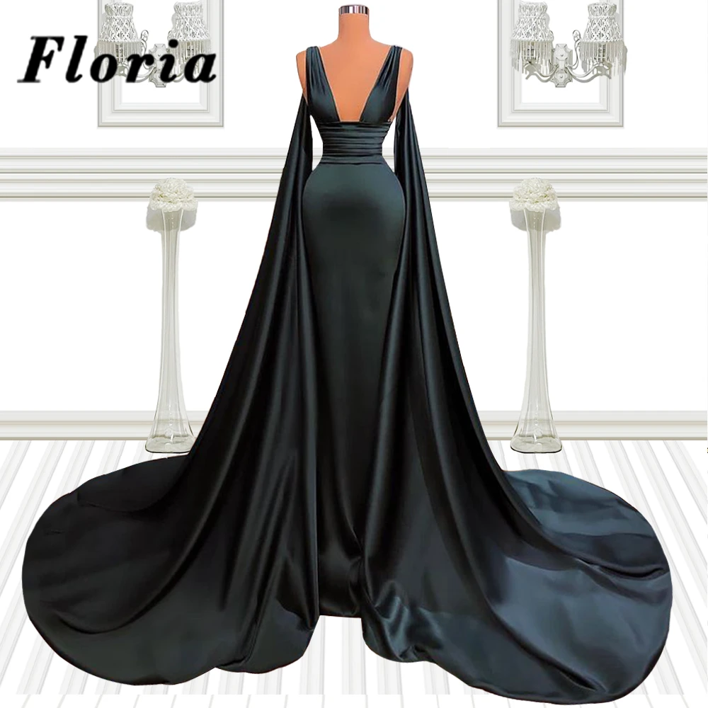 Роскошные платья для выпускного из Дубая с рукавом и шлейфом, платье знаменитости с V-образным вырезом, индивидуальный дизайн 2021, новейшие вечерние платья для официальной вечеринки
