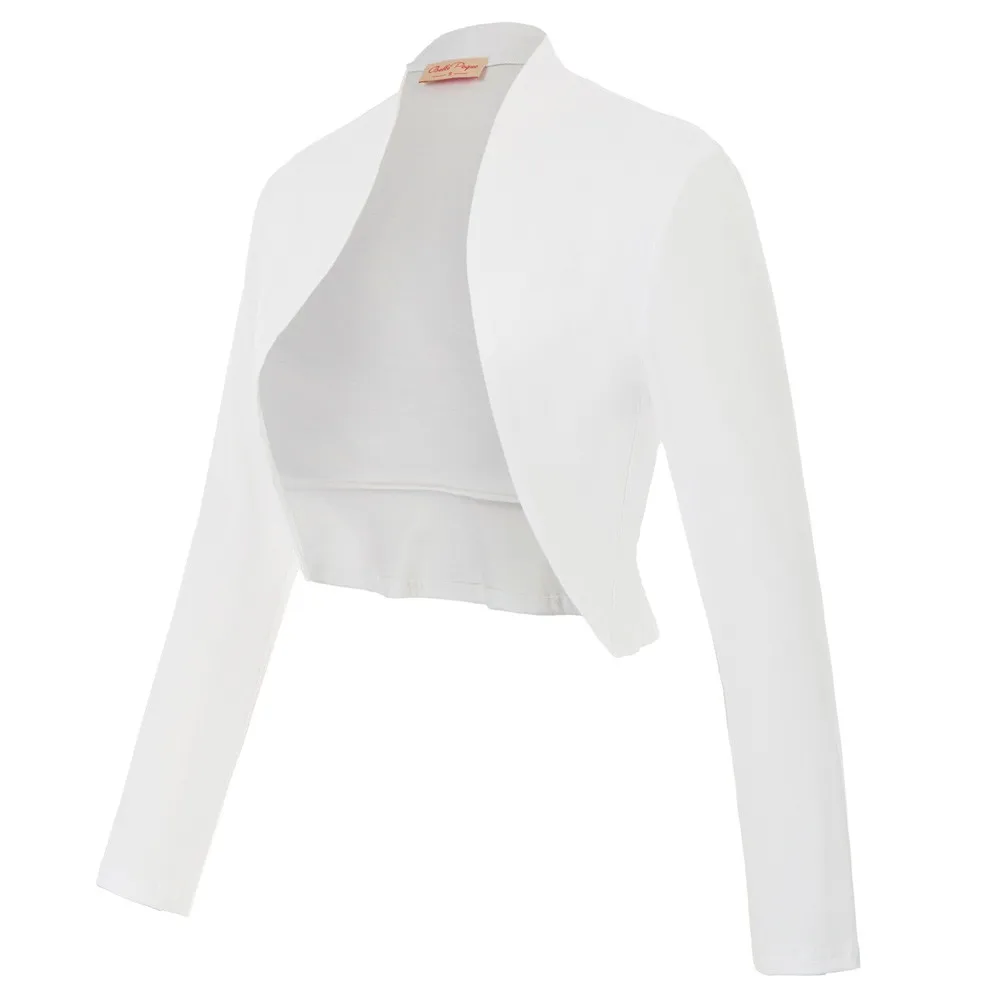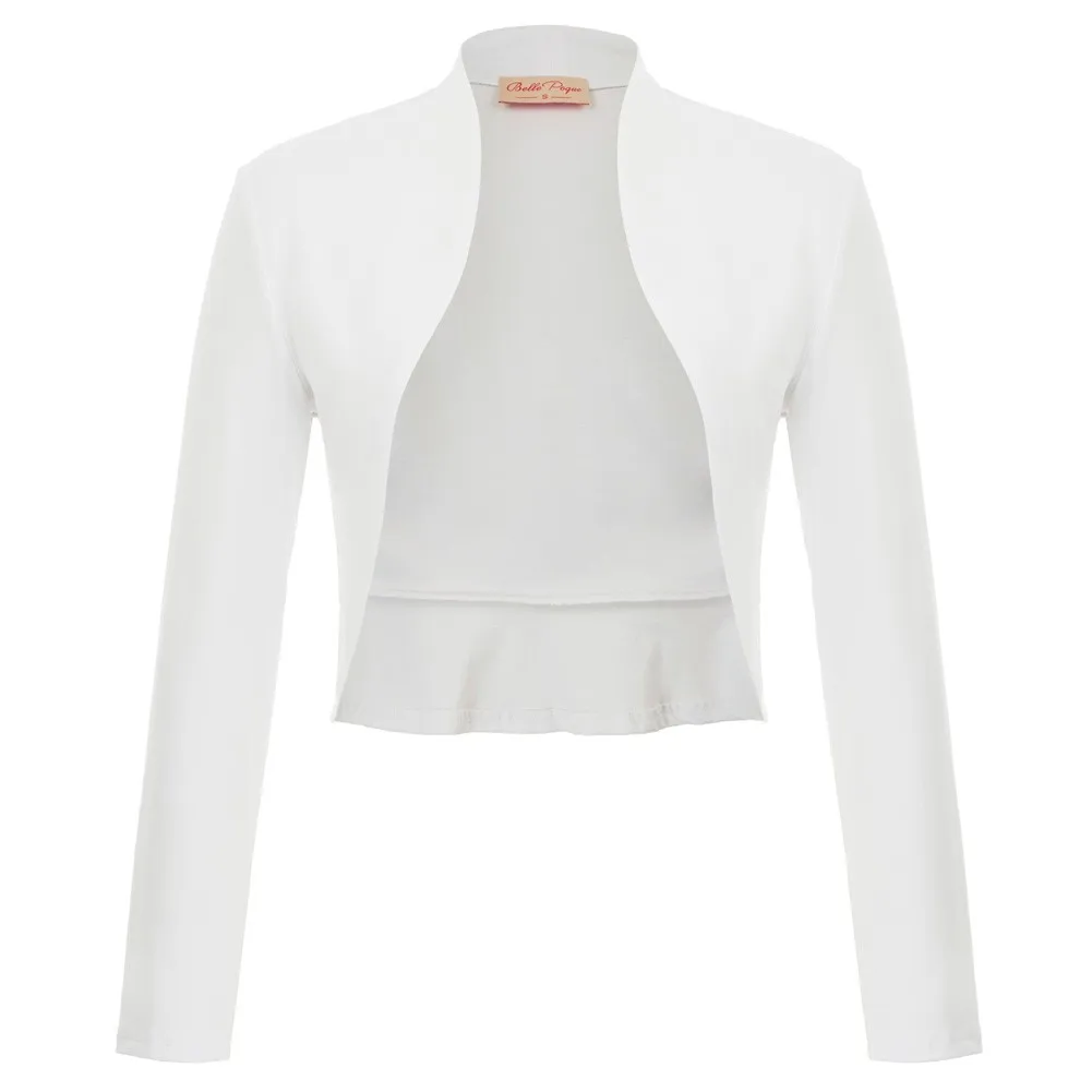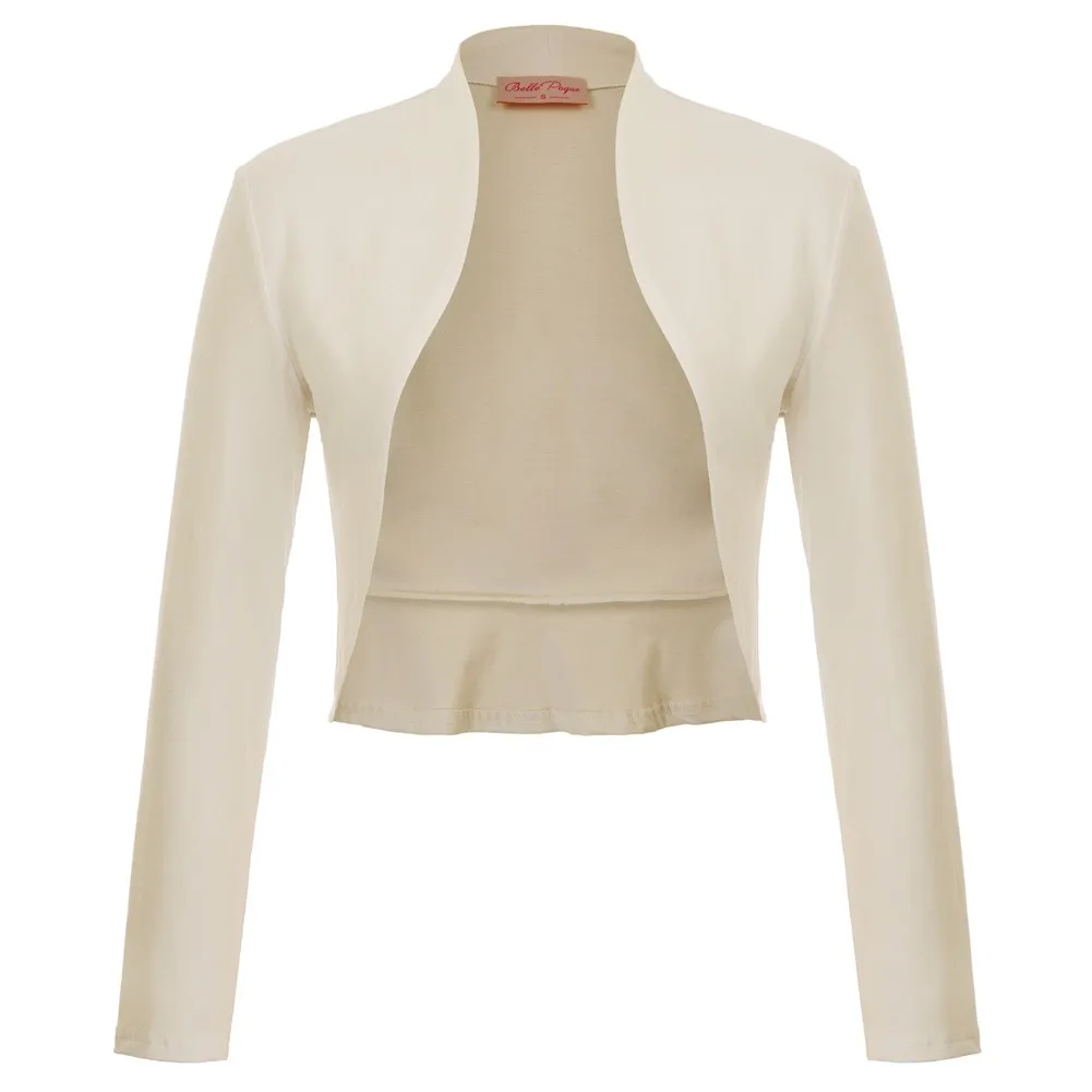 Belle Poque элегантный жакет для женщин в винтажном стиле; Пальто Тонкий Формальные Вечерние вечернее сборками и скругленным вырезом болеро с длинными рукавами открытой передней Хлопковый жакет-болеро