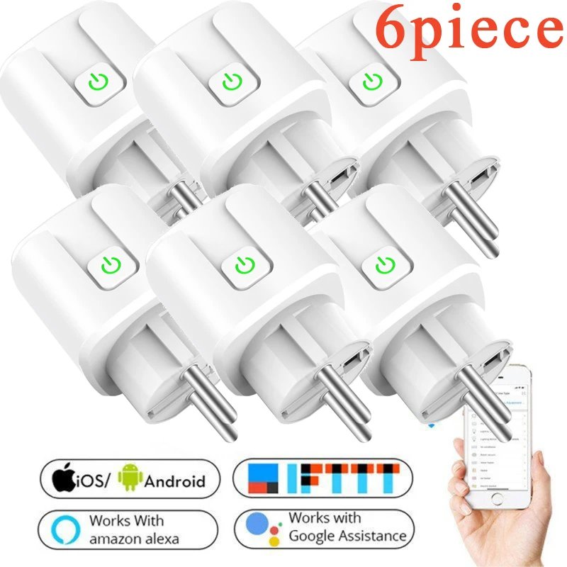 6 шт. Wi-Fi Smart Plug 16A адаптер для розеток европейского стандарта Беспроводной пульт дистанционного управления голосовой Управление Мощность с контролем энергии на выходе таймер разъем для Alexa Google Home
