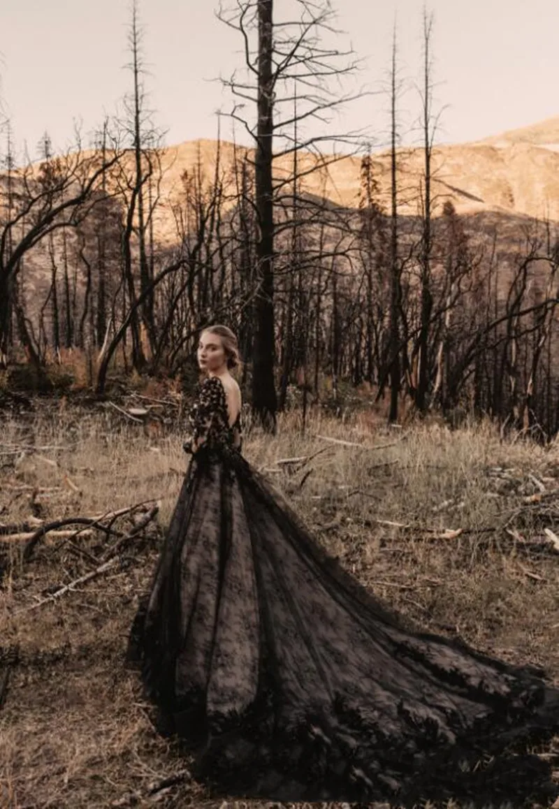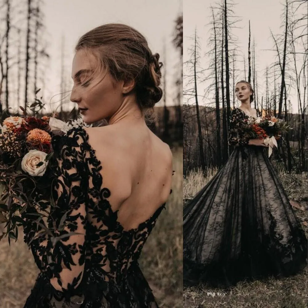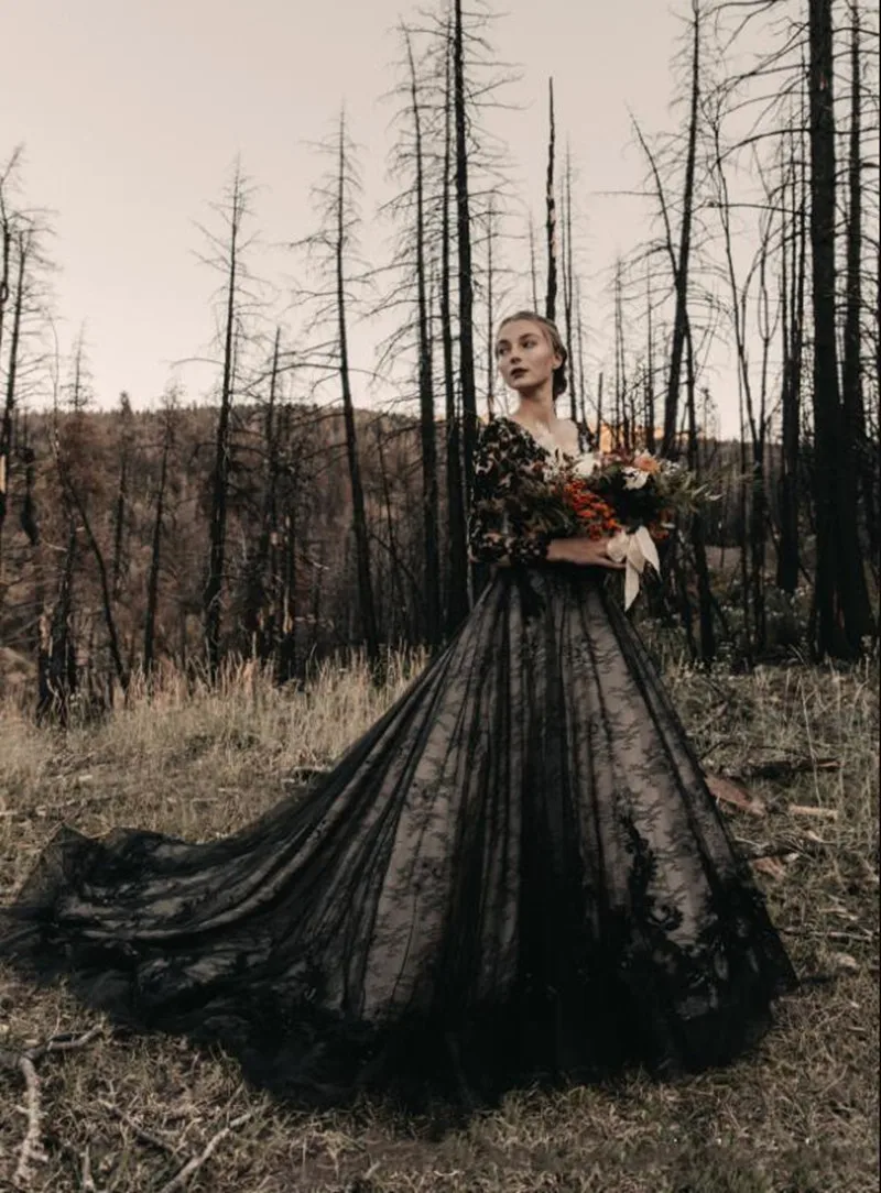 Женское кружевное свадебное платье, готическое черное ТРАПЕЦИЕВИДНО...