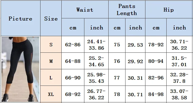 S Длина: 29,53 обхват талии: 24,41-33,86 обхват бедер: 30,71-36,22
