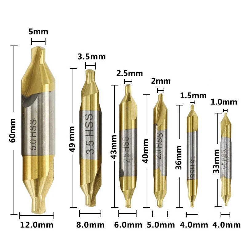Центр из быстрорежущей стали, 6 шт., 1,0-5,0 мм, набор центральных ...