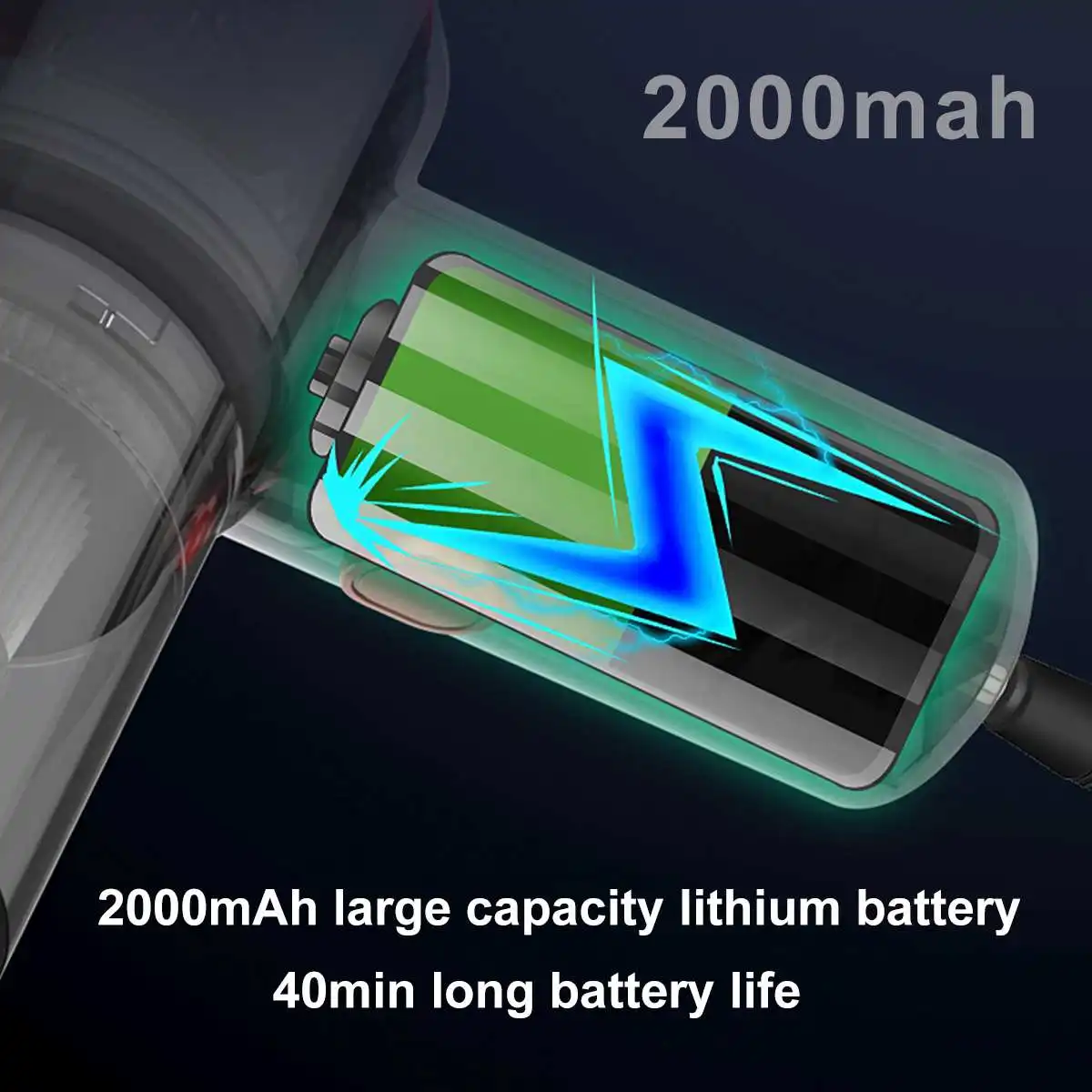 Характеристики:Цвет: черный/белыйМатериал: АБСНоминальное напряжение: 7,4 ВНоминальная мощность: 120 ВтСтепень вакуума: 9000 ПаАккумулятор: встроенный перезаряжаемый аккумулятор 2000 мАчВремя зарядки: около 3 часовВремя работы: около 40 минутРазмер: около 165x140 мм/6,5x5,5 дюйма (длина такая же, как мобильный телефон)