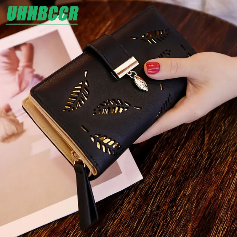 Женский кошелек с золотыми полыми листьями, Женский Длинный кошелек...