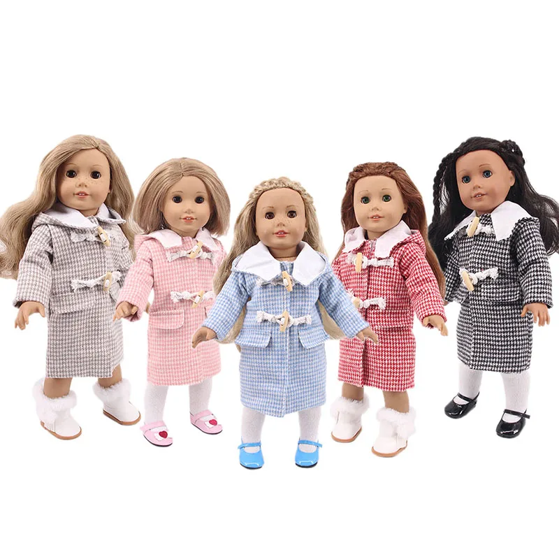 Матовый плед ткань кружевное платье в кукольном стиле для девочек + шляпа для 18 дюймов американская кукла девочиковая игрушка 43 см для ухода за ребенком для мам Одежда для новорожденныхмалышей Аксессуары для нашего поколения Nenuco