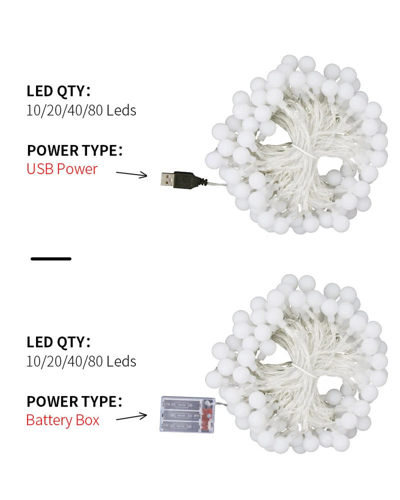 Светодиодная гирлянда с шариками, USB/на батарейках, сказочные гирлянды, водонепроницаемые, для рождественской елки, свадьбы, дома, в помещении, декоративная лампа