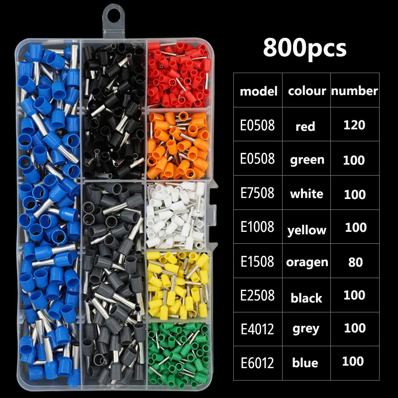 Трубчатая Клеммная коробка = E0508(200 шт.) + E7508(200 шт.) + E1008(200 шт.) + E1508(250 шт.) + E2508(250 шт.) + E4009(50 шт.) + E6012(25 шт.) + E10-12(25 шт.)