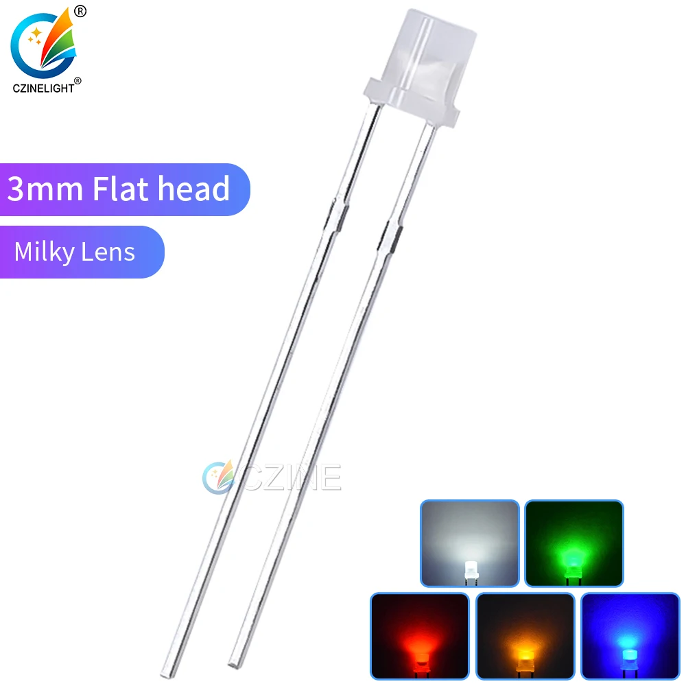 1000 шт.пакет 3 мм с плоским верхом лампа 3v желтый и зеленый цвета красные, синие теплый белый молочно-сквозное отверстие Led лампа 3 мм СИД диоды для подавления переходных скачков напряжения