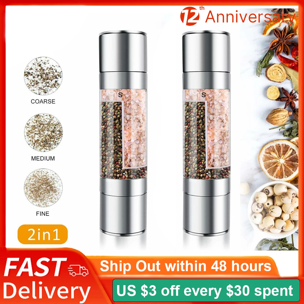 Мельница 2 в 1 для соли и перца, нержавеющая сталь ручной для специй