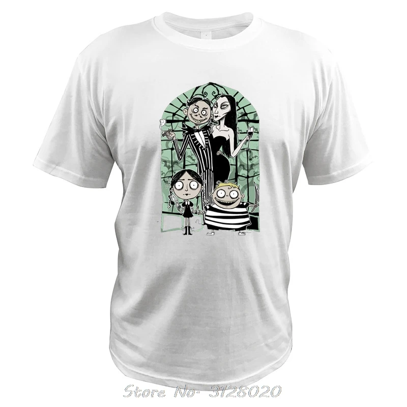 2021 Аддамс Семья футболка Для мужчин Хэллоуин с О-образным вырезом Повседневное Morticia среда футболка Camisetas цифровой печати, Гомез топы тройник