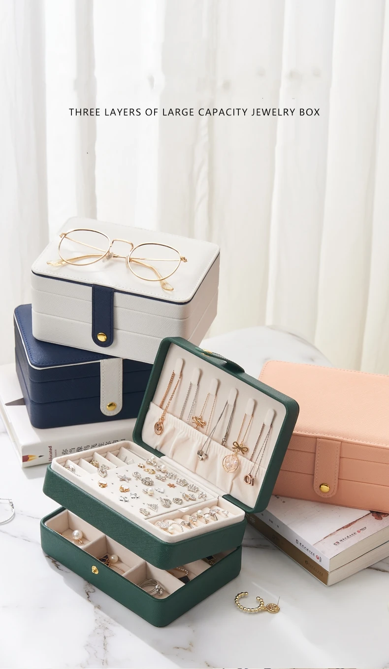 Двухслойный дорожный портативный бокс для серег-гвоздиков, кожаный бокс для хранения ювелирных изделий, 2021
