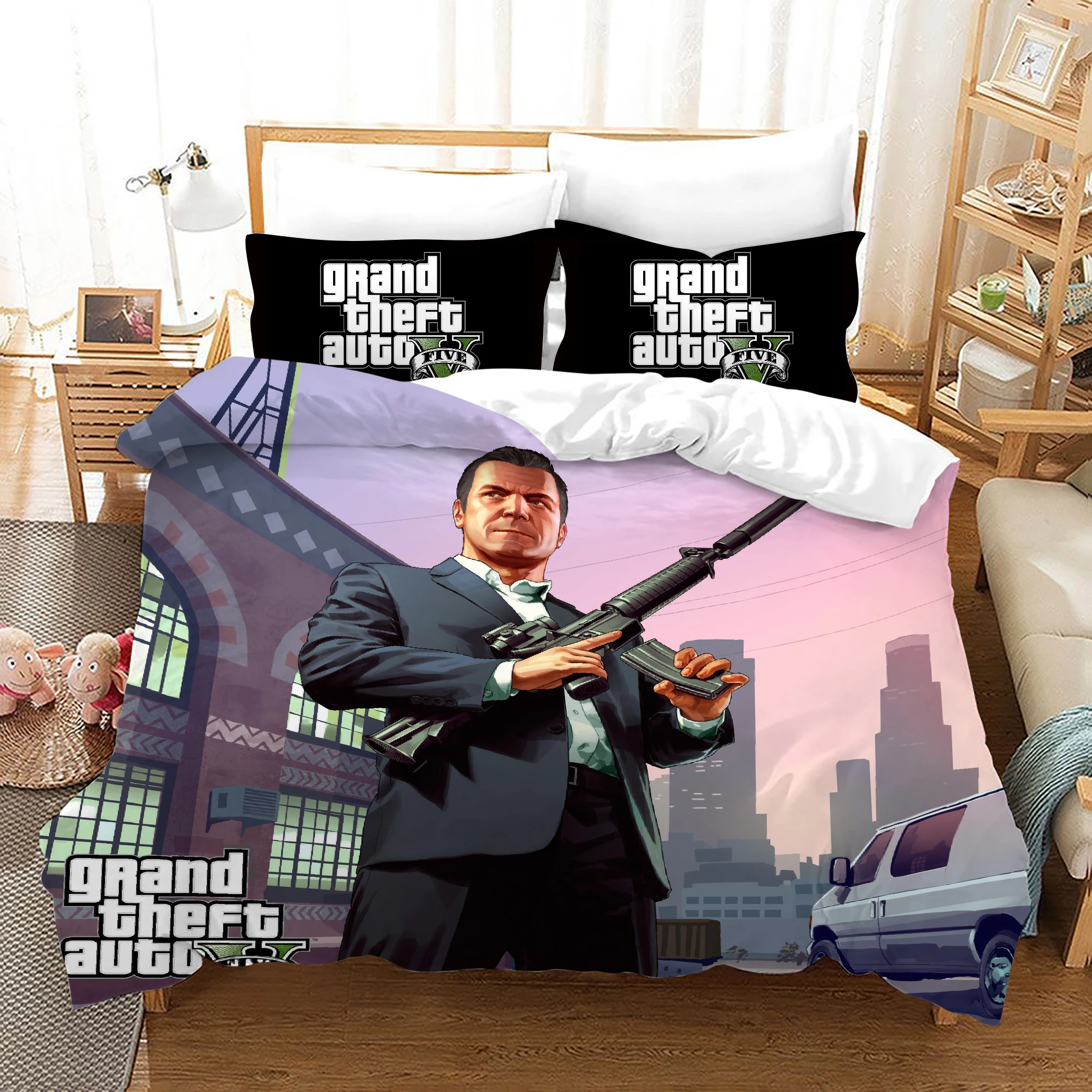 Комплект постельного белья Grand Theft Auto V, видеоигры, набор с пододеяльником и 3D-принтом, для односпальной, королевских, больших размеров, мультяшное одеяло, постельное белье