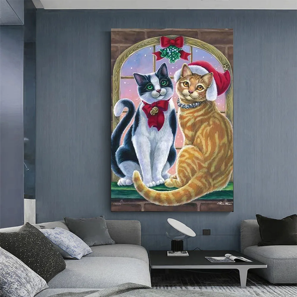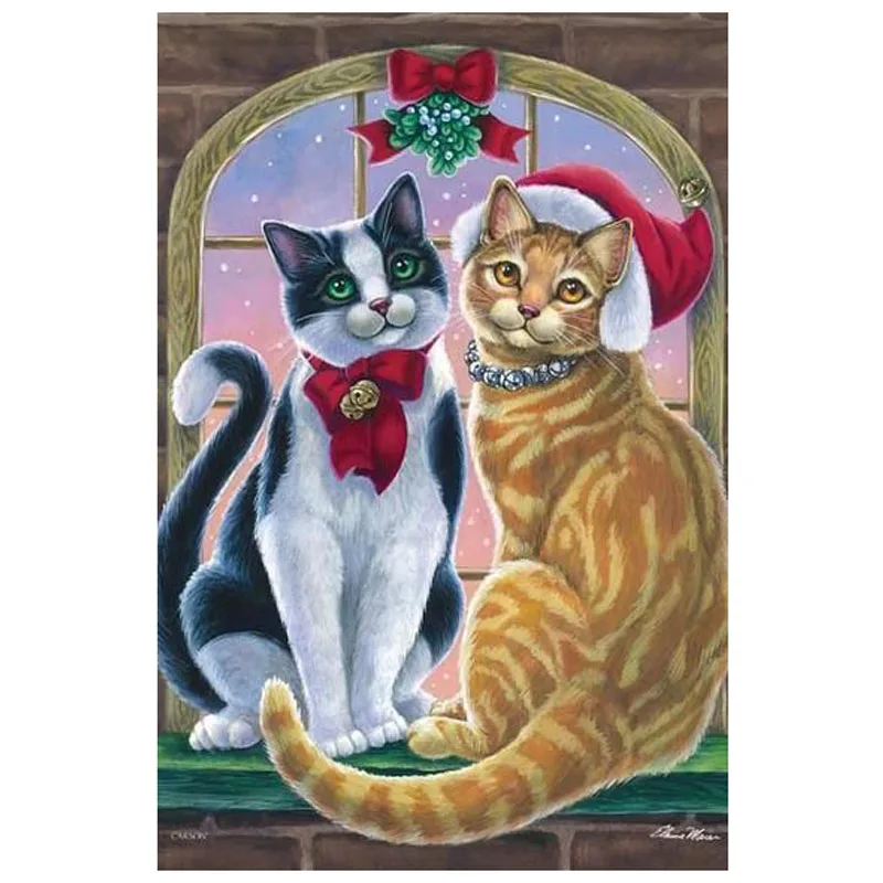 Рождественского кота DIY алмазная живопись желтого кота в красном ц...