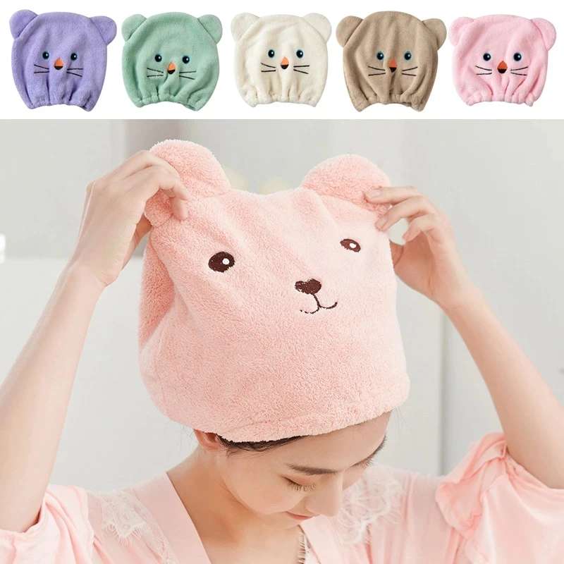 1 шт., шапочка для душа с милым медведем из микрофибры, тюрбан с ша...