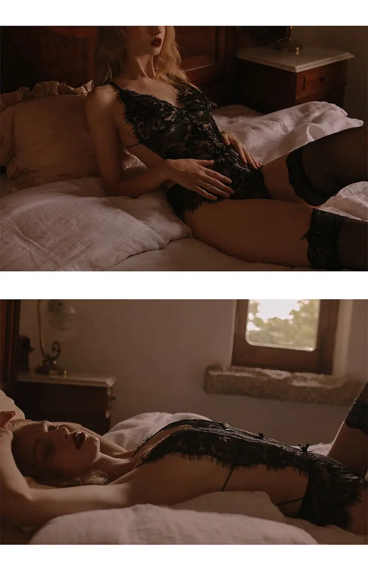 Сексуальное цельное боди SXTHAENOO, прозрачное кружевное нижнее белье с завязками на спине, Женское ночное белье, вышитые боди