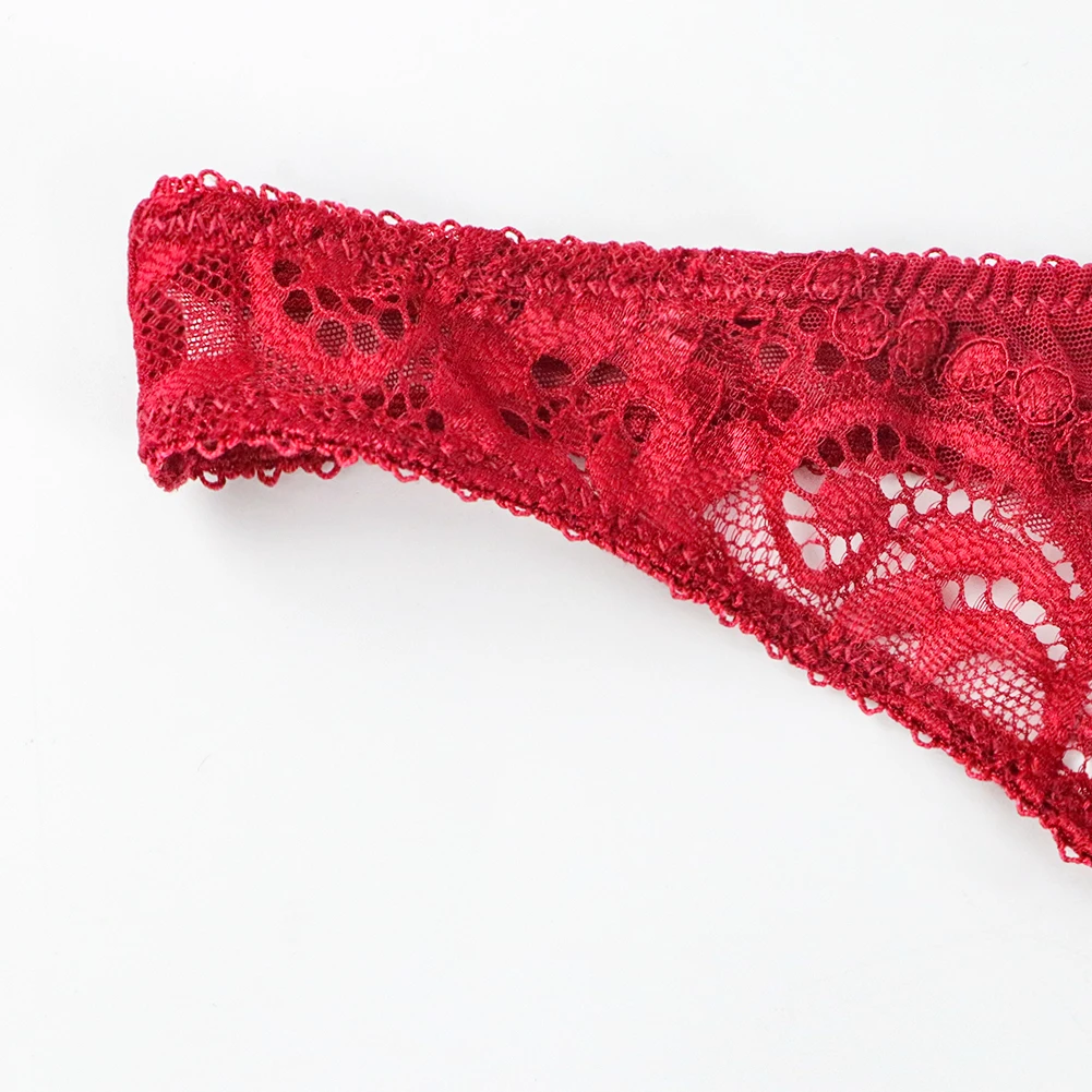 Комплект женского кружевного нижнего белья с вышивкой, стринги, поя...