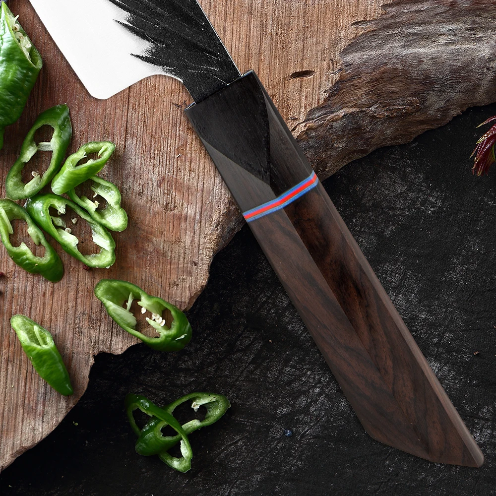 Лезвие изготовлено из стали 440C и выковано вручную опытными мастерами. Эта сталь не является обычной нержавеющей сталью. Может быть стабилизирован при 60 ± 2 HRC. Очень острый, устойчивый к коррозии и прочный. Уникальная текстура лезвия ясна и красива.Многофункциональный кухонный нож