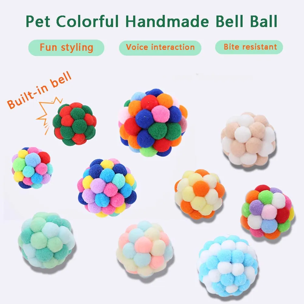Плюшевый мяч-колокольчик ручной работы для домашней кошки, забавная...