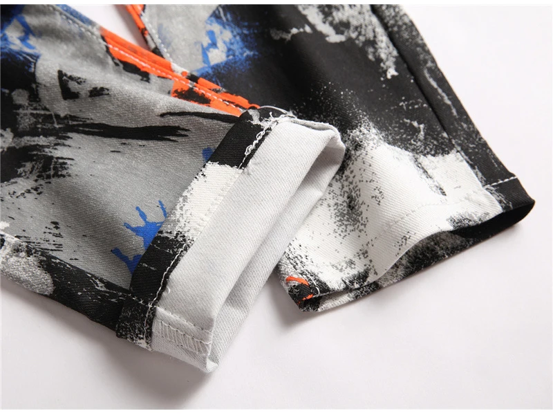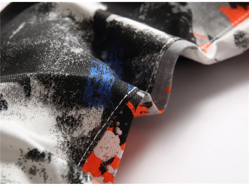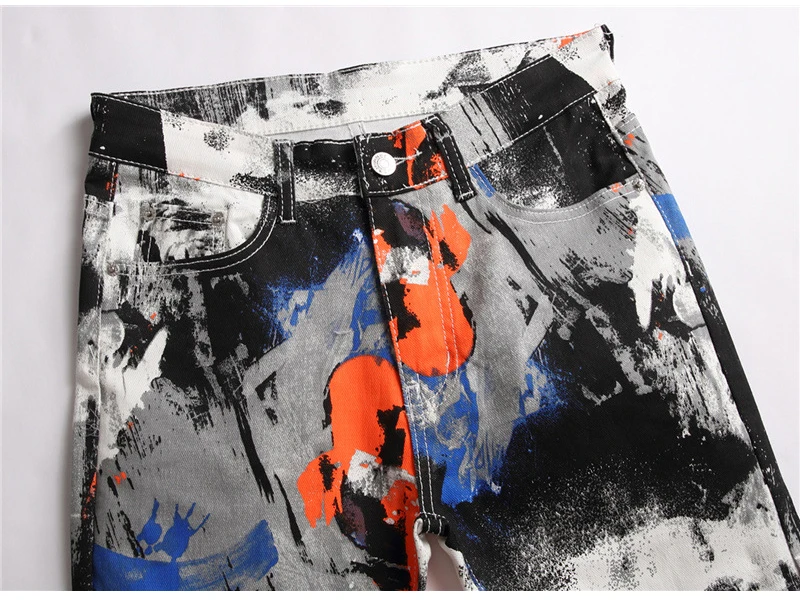 Мужские узкие Стрейчевые джинсы с принтом, модные Y2K контрастные цвета, неоновые окрашенные белые брюки