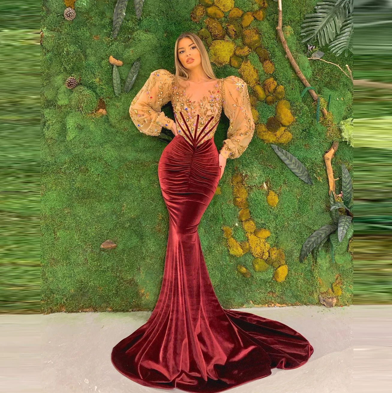 2021 новые дизайнерские русалочьи платья на выпускной с кристаллами Пышное Платье Одежда с длинным рукавом размера плюс бархат со шлейфом торжественные платья для выпускного бала icon star icon star icon star icon star icon star