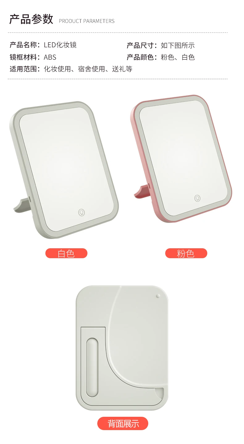 Светодиодное зеркало для макияжа с светильник для общежития настольное зеркало для макияжа женское складное красное портативное маленькое зеркало белый розовый для женщин