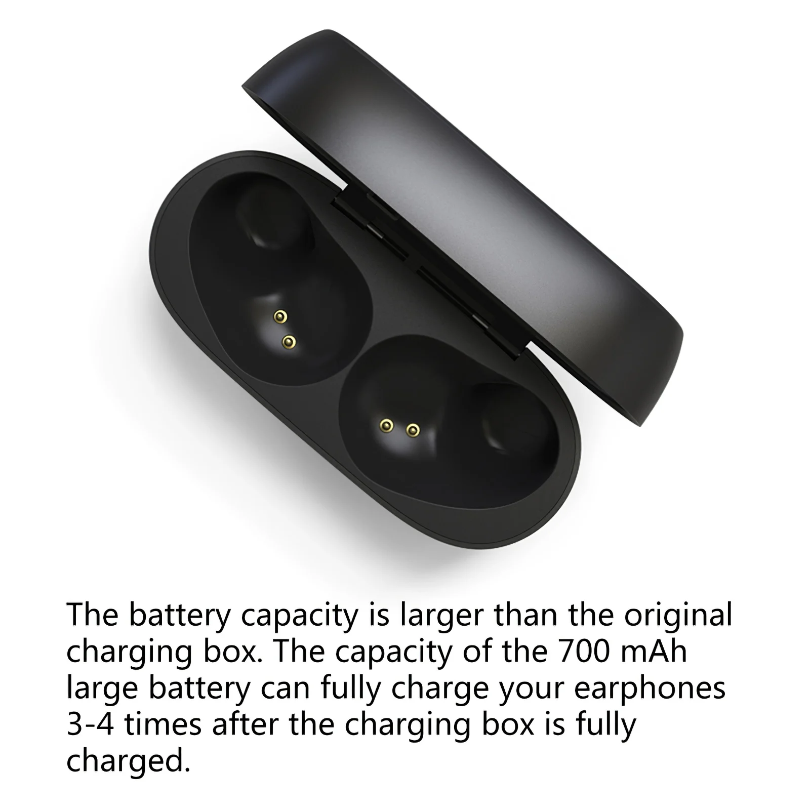 Чехол для зарядки имеет встроенный аккумулятор большой емкости 700 мА, который может заряжать гарнитуру 3-4 раза после полной зарядки.