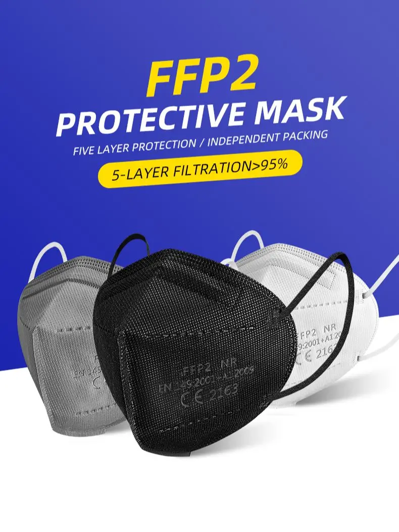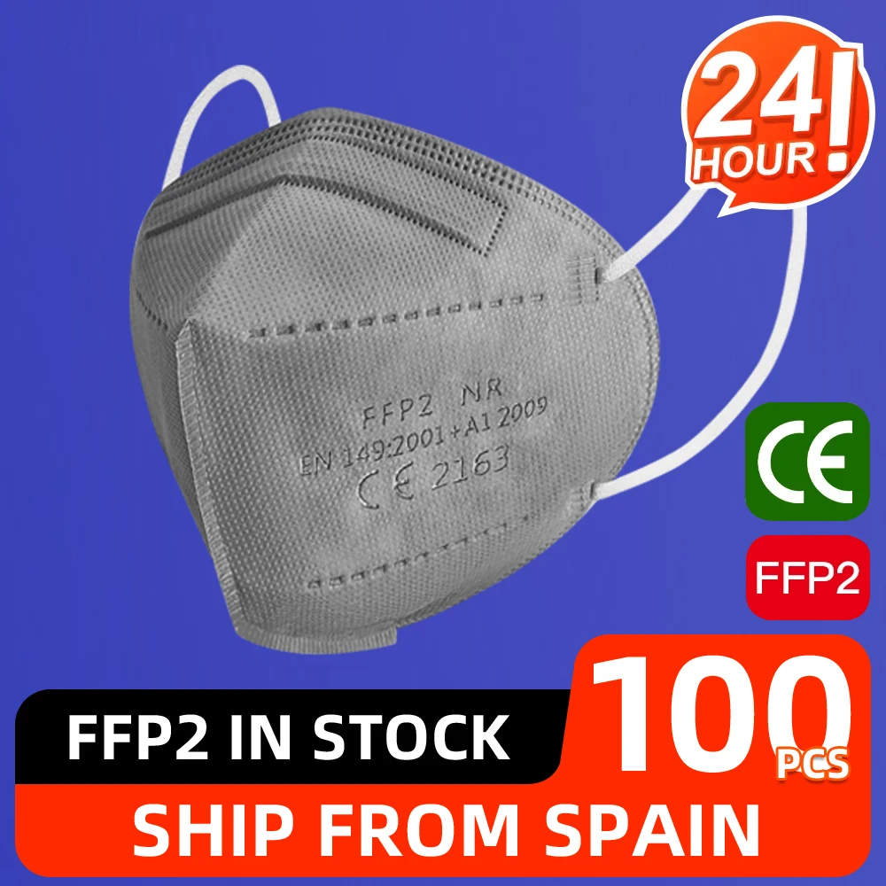 100 шт. FFP2MASK черные FFP2 маски KN95 маски для взрослых 5-слойные фильтры аналогичный защитный респиратор для рта маска