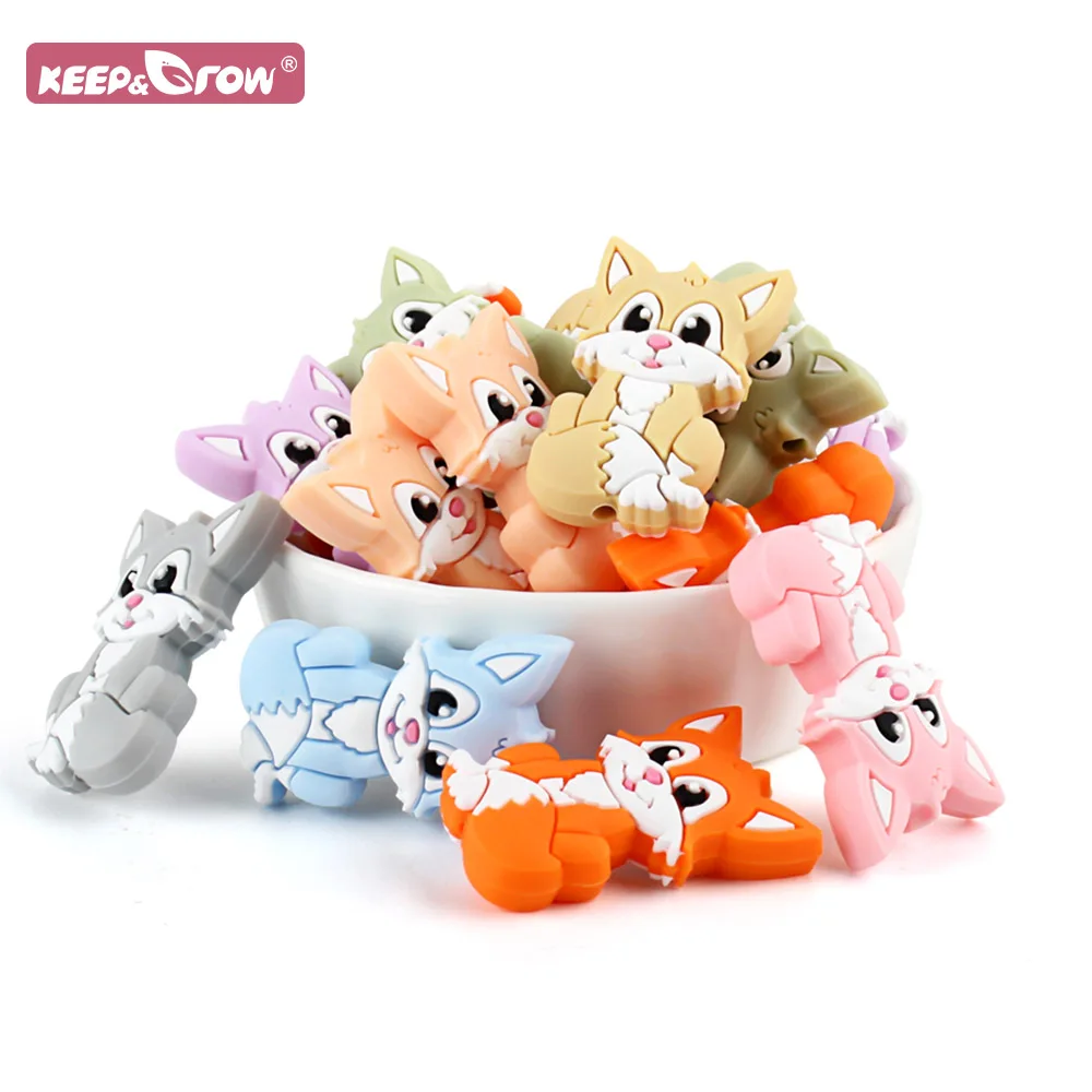 10 шт., силиконовые бусины с лисой, Детские Прорезыватели для зубов, для ухода за полостью рта, Детские Силиконовые Бусины без BPA