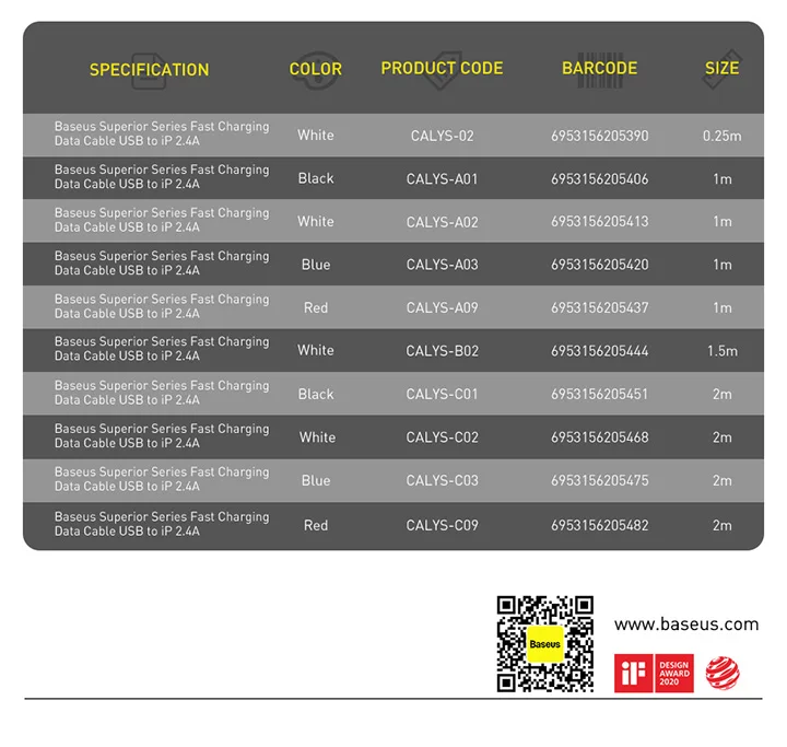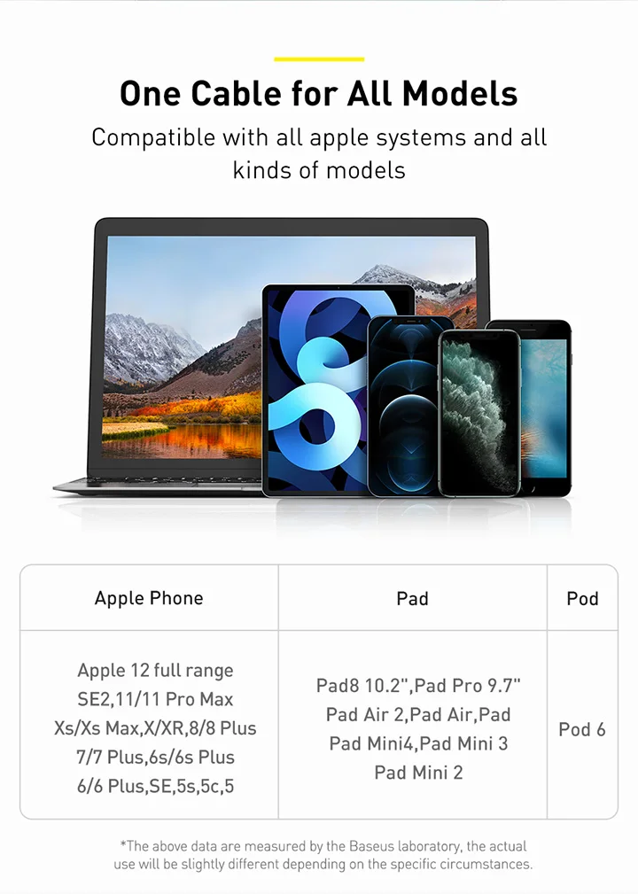 Feature 8for lightning cable, usb cable for iphone charger, baseus cable