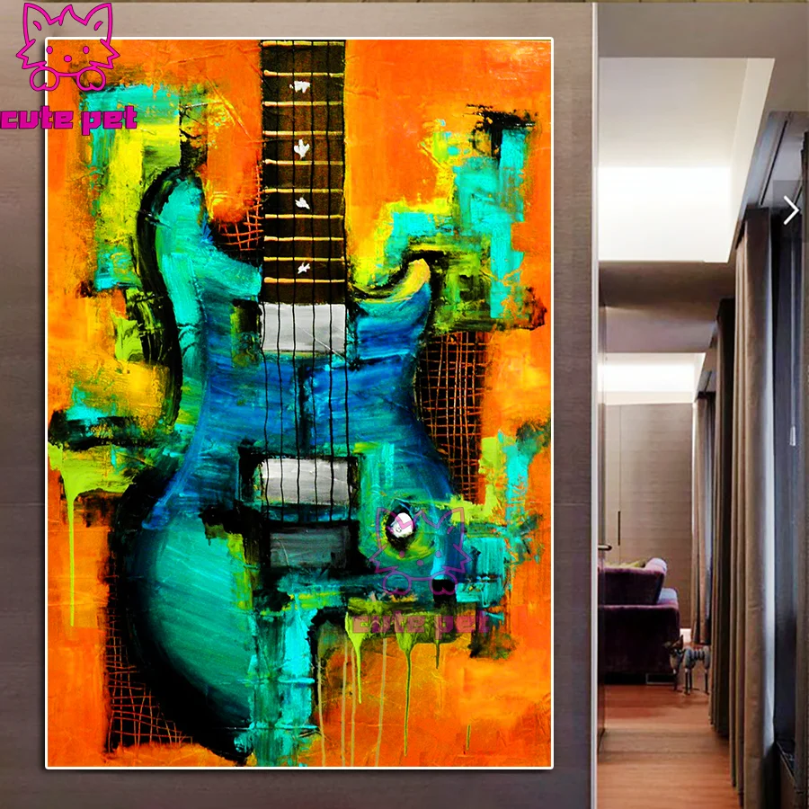 Набор для алмазной живописи 5D сделай сам, Набор для вышивки крестиком, абстрактная гитара, полноразмерная круглая Алмазная вышивка, мозаика, украшение для салона