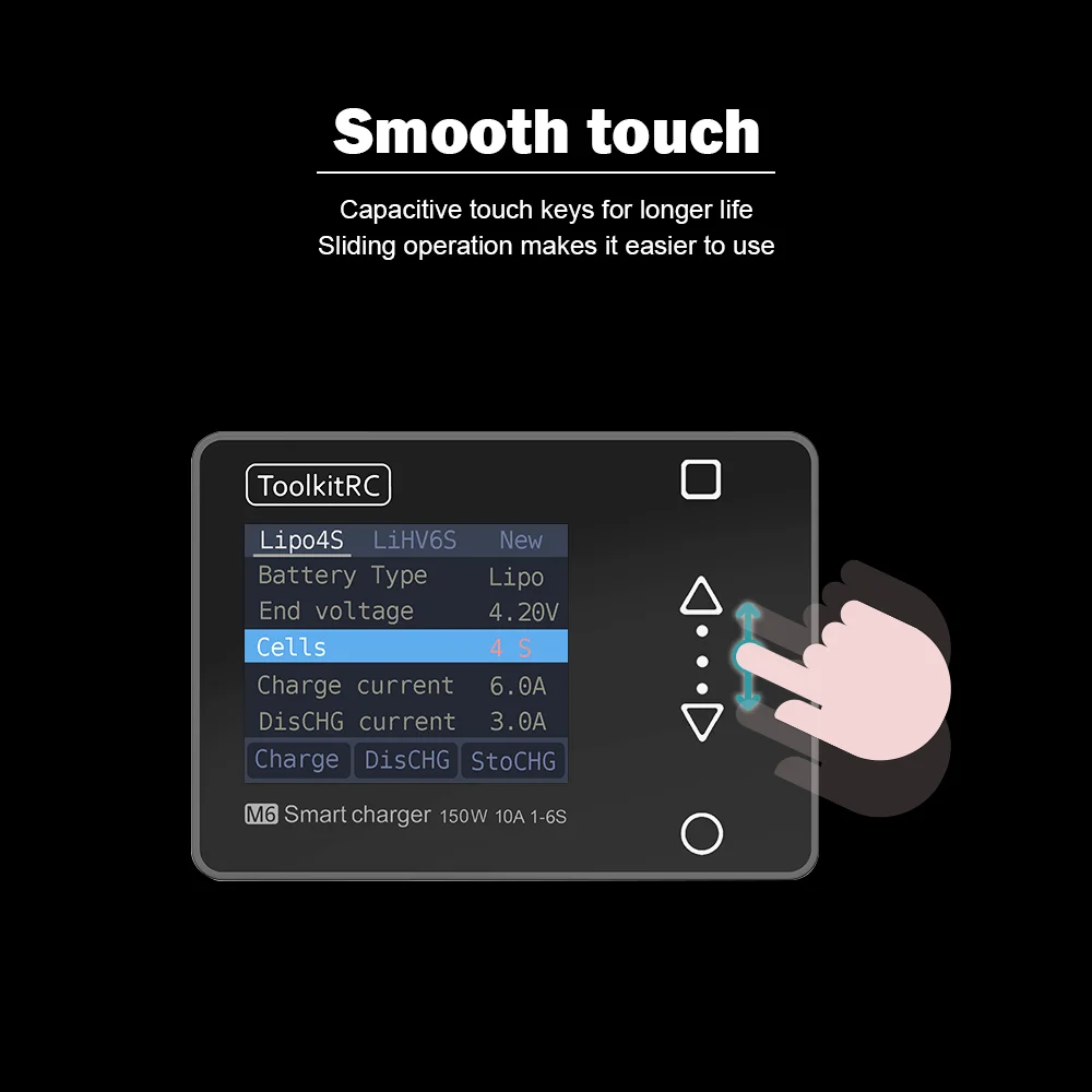 Зарядное устройство ToolkitRC M6, 150 Вт, 10 А, ЖК-дисплей, 2-6S Lipo