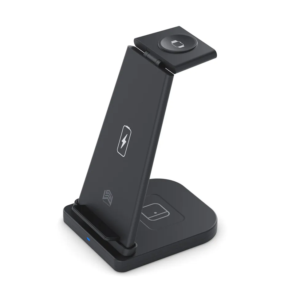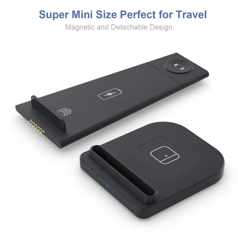 Модель: 3 в 1 беспроводная зарядная док-станцияВход: 9V-2AМощность: 10 Вт макс.USB кабель Длина: 1,2 мПодходящий телефон: для Iphone 8/X/XS/XR/11/11 ProПодходящие часы: для Apple Watch 5/4/3/2/1Подходящие наушники: для Airpods 2/Airpods ProХарактеристика:1. Он может заряжать телефон, Смарт-часы, ручку apple, наушники одновременно, чтобы сэкономить ваше время.2. Чтобы эффективно защитить аккумулятор мобильного телефона, как только мобильный телефон полон электричества, он поставляется с автоматическим отключением, чтобы избежать слишком большой зарядки, а также с чувством безопасности.3. Как только вы почувствуете, что смотрите видео на мобильном телефоне или используете телефон во время зарядки, вы можете свободно держать его поперечным или вертикальным в соответствии с вашими потребностями.4. Съемный, легко хранить и носить с собой.