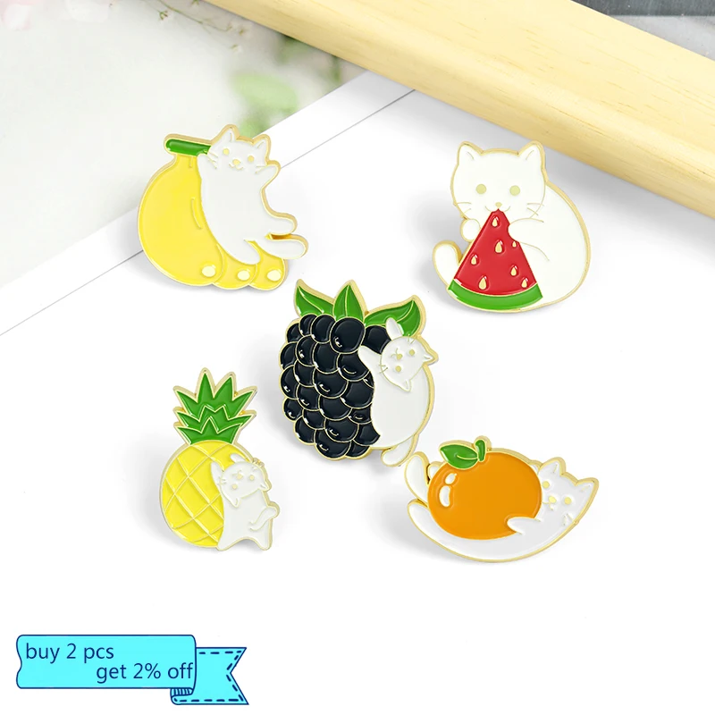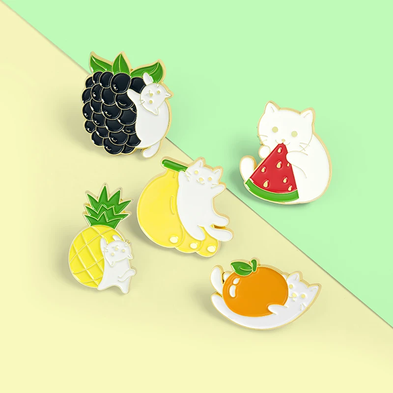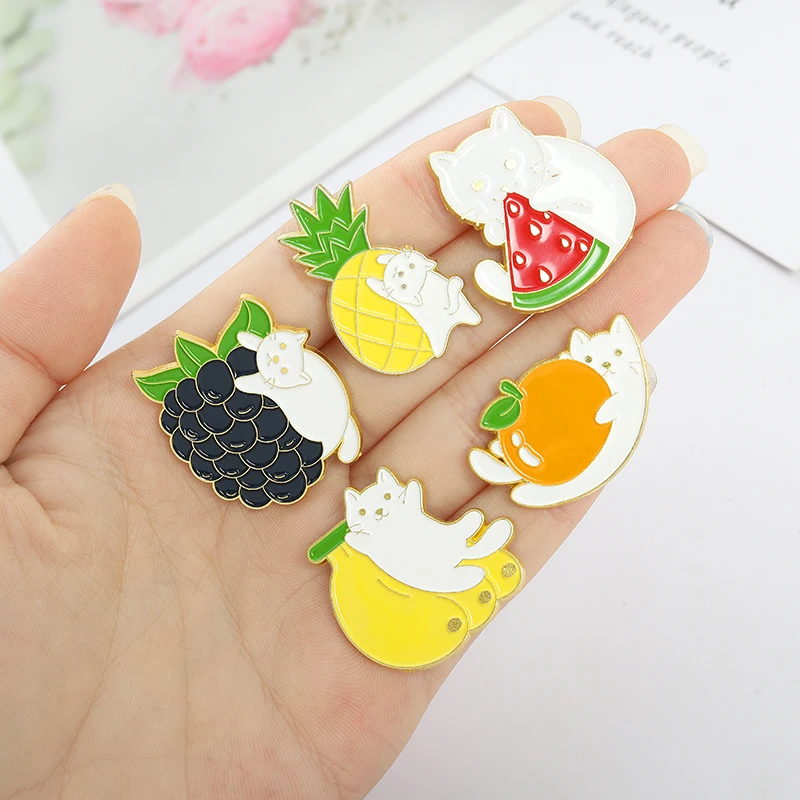 Брошь эмалированная в форме фруктов, винограда, оранжевого, банана, арбуза