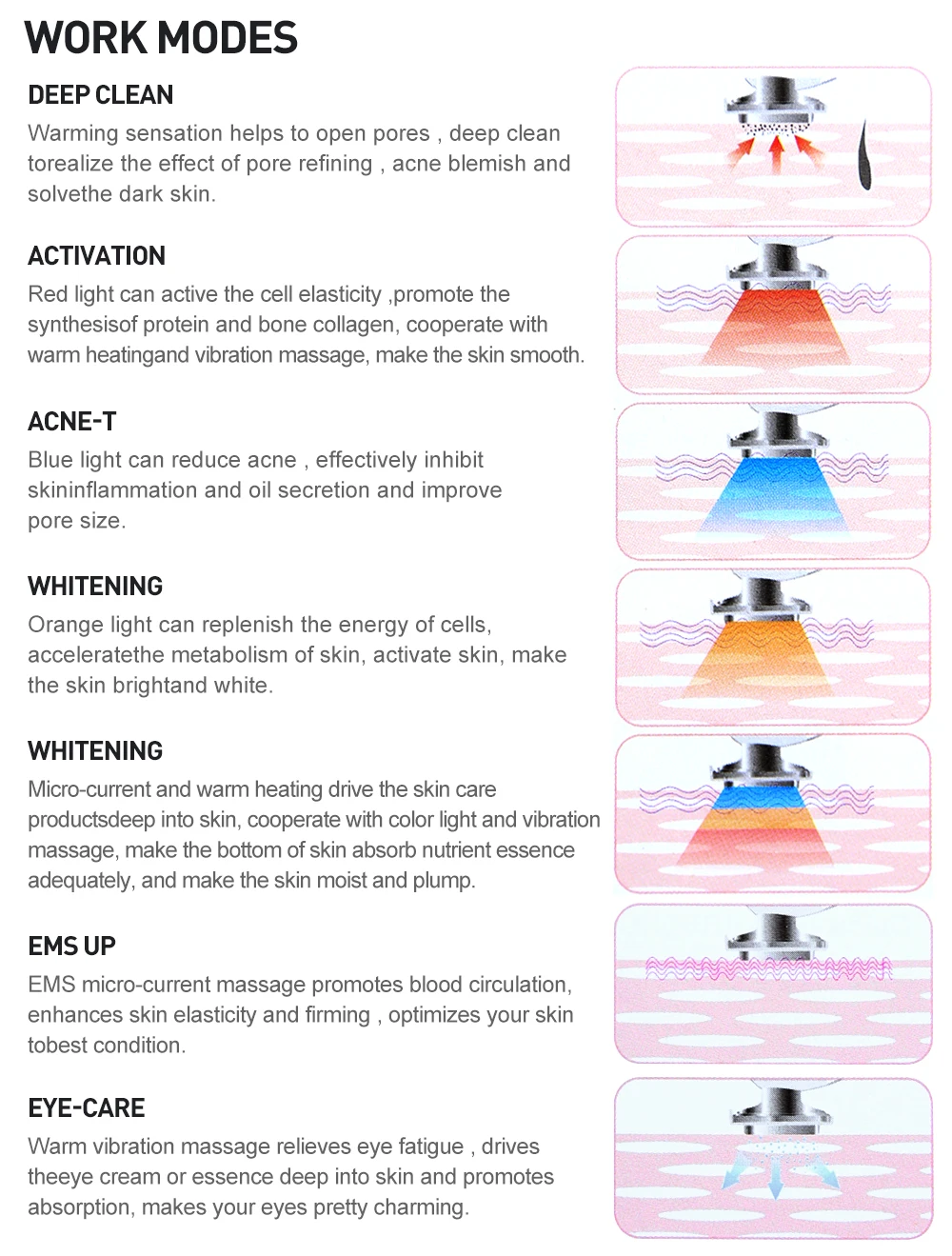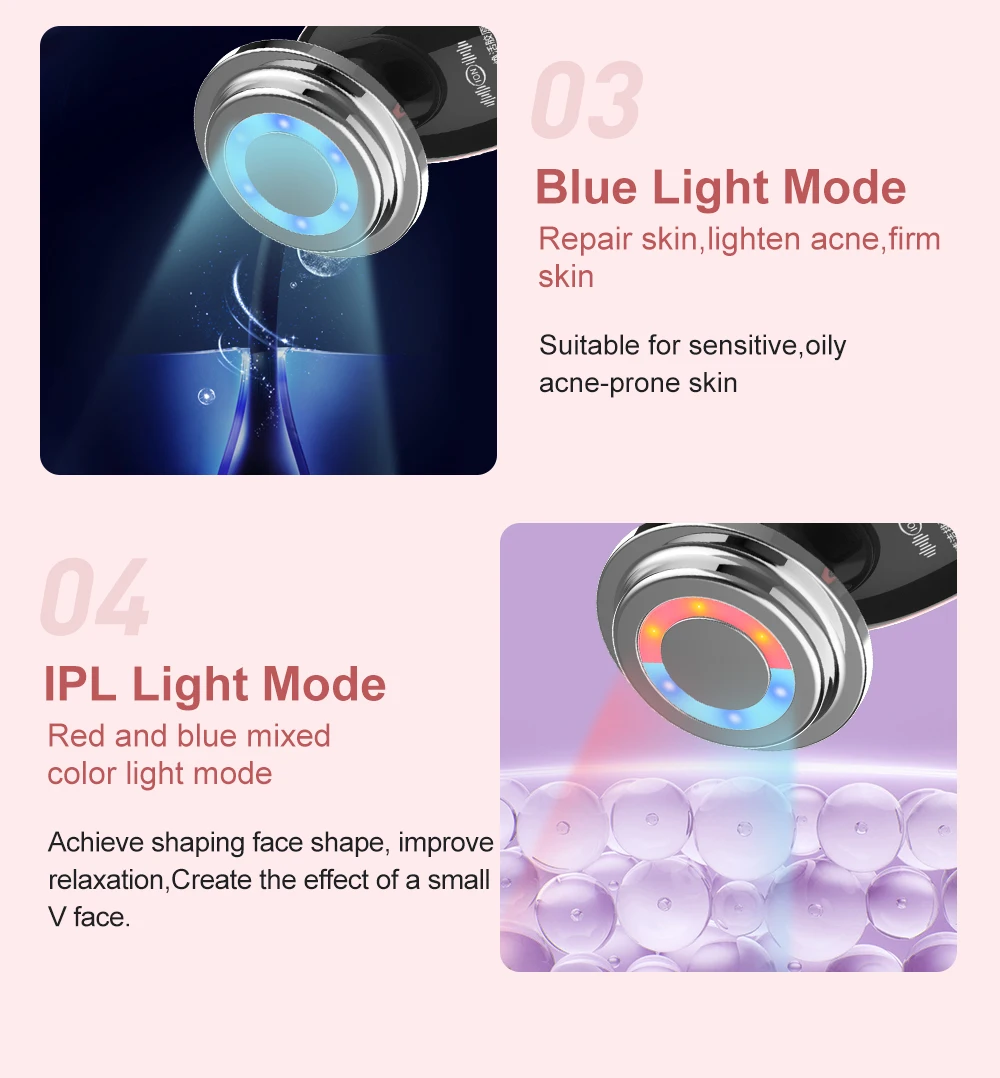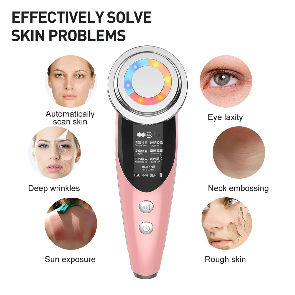 Массажер для лица 7 в 1, ультразвуковой, со светодиодсветильник кой