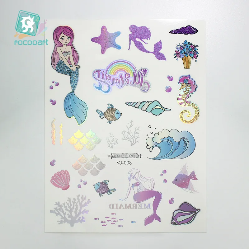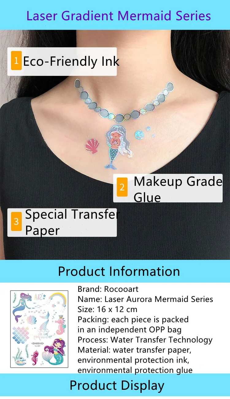 Боди-арт лазера градиент ожерелье с русалкой дизайн переводятся с помощью воды, Водонепроницаемый Временная тату-наклейка для татуировки золотого и серебряного для WomenFake татуировки