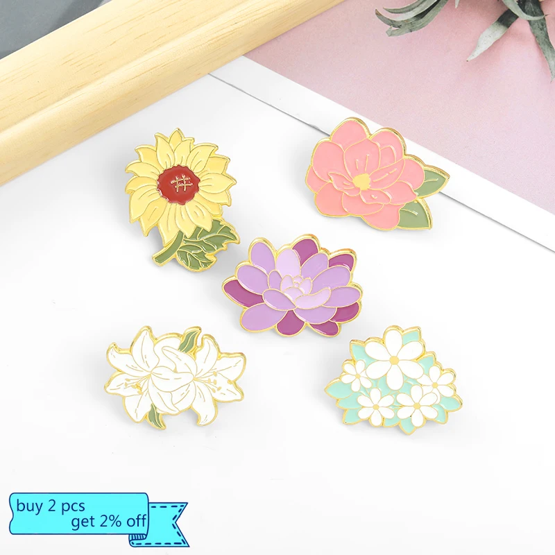 Эмалированная булавка с цветами сотни цветов, индивидуальный значок гардении, подсолнечника, лилии, лотоса, вишни, мешочек для брошек на лацкан, Ювелирное Украшение в подарок