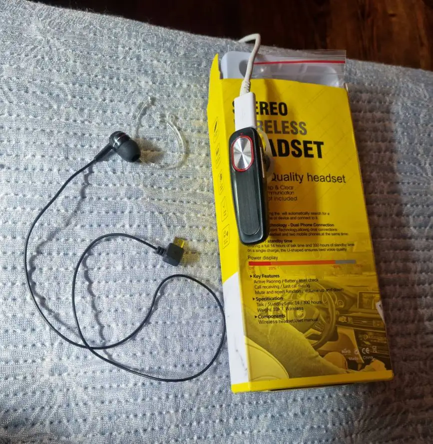 все хорошо,как в описании. доставка 20 дней.качество разговора хорошее, немного тежеловато на ухе, но за счёт дополнительного наушника вообще супер
