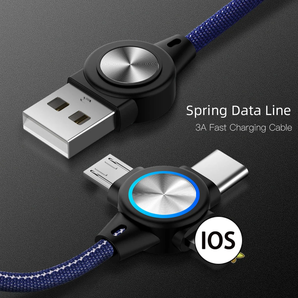 USB-кабель 3 в 1 для IPhone 12, XS, XR, Xiaomi, зарядный кабель Micro USB, Type-C, Lightning, зарядный шнур