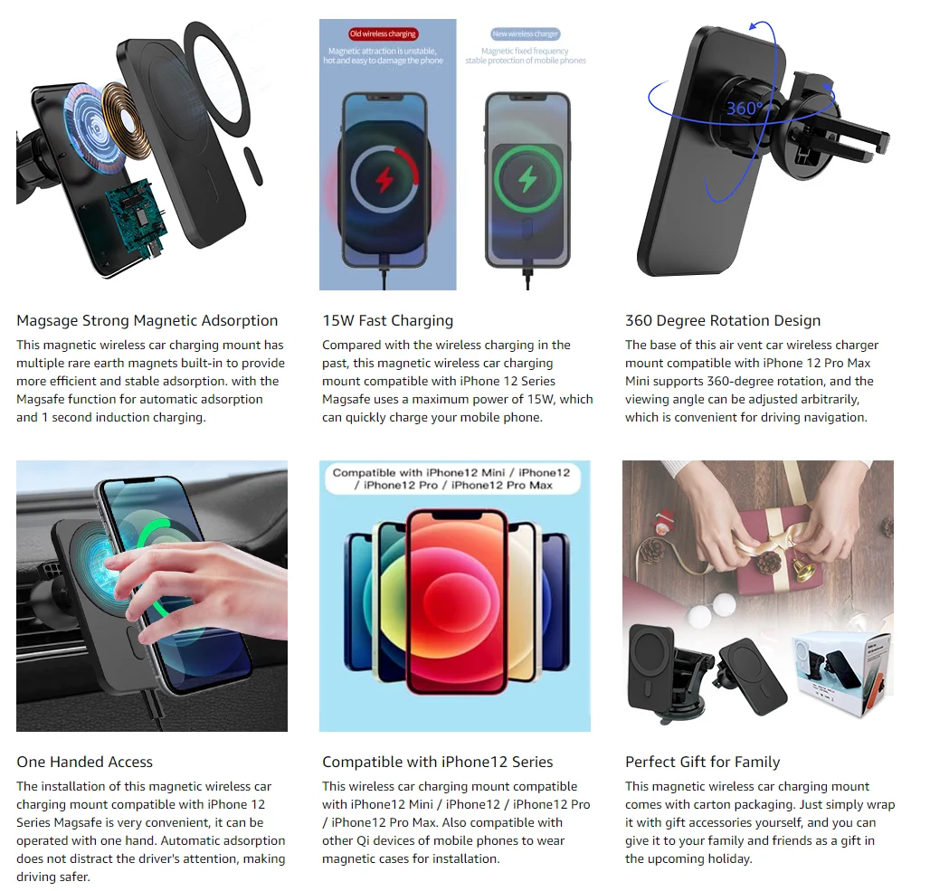 Магнитное беспроводное автомобильное зарядное устройство, 15 Вт