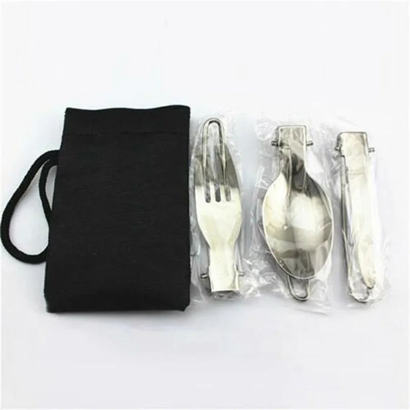 Набор посуды 3 в 1, портативный складной столовый прибор из нержаве...