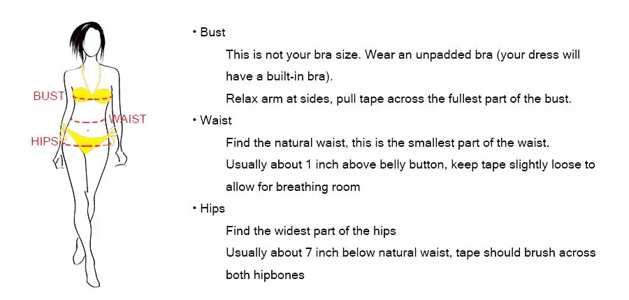 Советы: 1: выберите размер в соответствии с вашим размером груди, талии и бедер, если вы находитесь между размерами, выберите на один размер больше.2: Если вы не уверены в выборе размера, пожалуйста, свяжитесь с нами или оставьте свой размер.3: эта таблица размеров предназначена специально для данного товара, при покупке в нашем магазине сверьтесь с таблицей размеров для каждого товара.4: из-за разницы во времени, мы не сможем ответить вам немедленно, мы ответим вам в первый раз после просмотра вашего сообщения.
