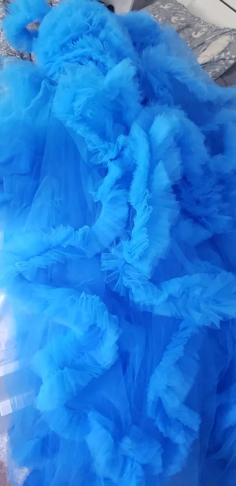 Очень пушистое светильник-голубое Тюлевое платье А-силуэта милое пл...