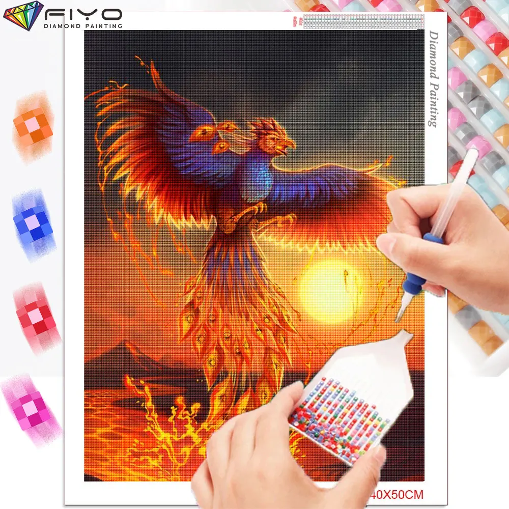 FIYO камни в форме ромбакруглый дрель 5D DIY алмазная живопись "золотой Феникс" Алмазная вышивка Животные крест стежка Наборы домашнего декора подарки