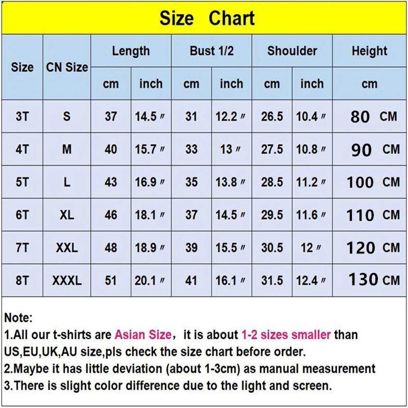 Футболка с короткими рукавами для мальчиков и девочек, От 3 до 9 лет