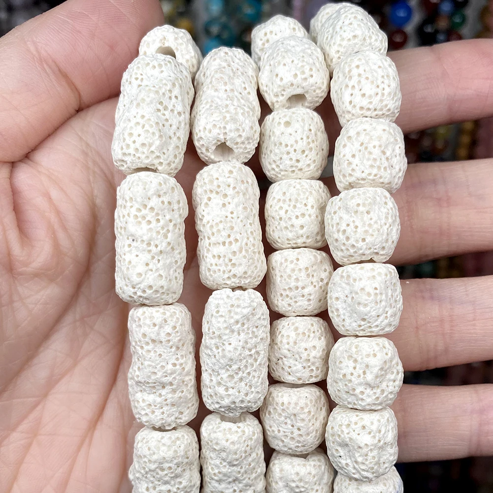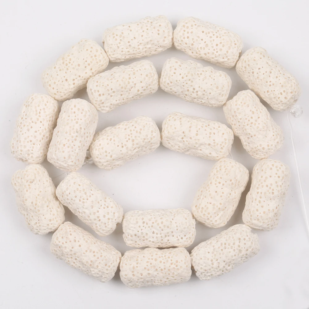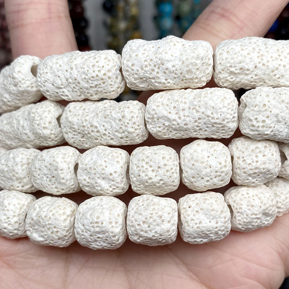С тусклой полировкой, натуральный белый вулканического камня вулканической лавы, бусины с большим отверстием матовые бусины для самостоятельного изготовления ювелирных изделий браслет аксессуары 15"