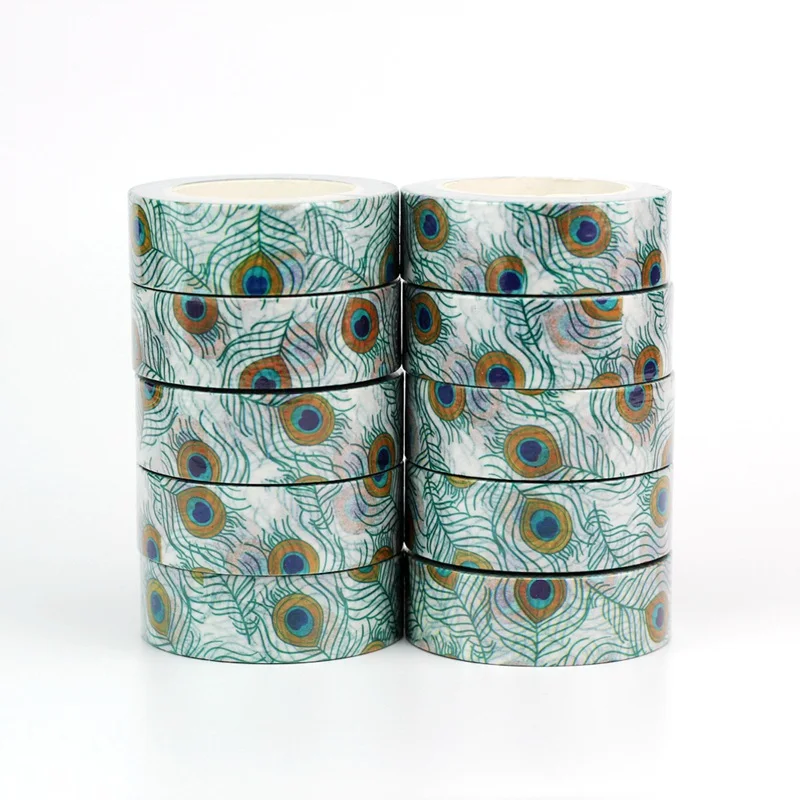 Оптовая продажа, 10 шт.лот, декоративные милые Васи-ленты с перьями павлина, самодельные клейкие Маскировочные ленты в стиле цилиндрического журнала, кавайные бумажные ленты