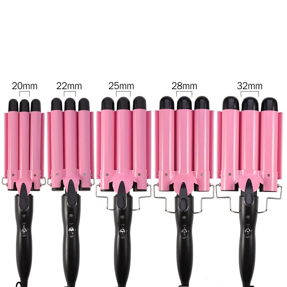 Щипцы для завивки волос с 3 бочонками, 25 мм, с ЖК-дисплеем, турмалиновые щипцы с тройными бочками, инструмент для салона, для женщин