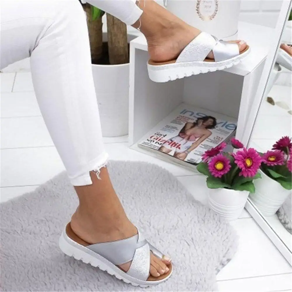 Сандалии женские ортопедические на танкетке, Повседневные Удобные босоножки с корректором большого пальца, на платформе