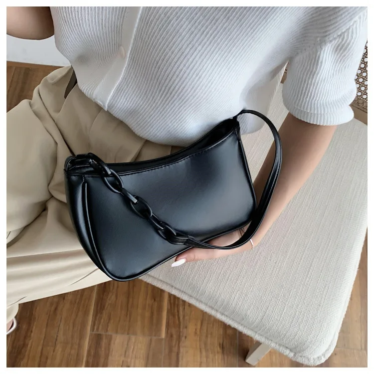 Сумка женская кожаная на цепочке, повседневный тоут в стиле ретро, Модный изысканный саквояж на плечо, однотонная Сумочка для покупок