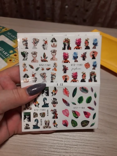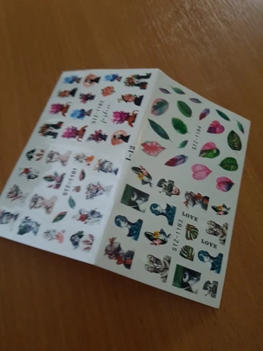 Наклейки очень хорошего качества. Плотные, яркие, чёткие. На белой основе, а значит можно клеить на любой цвет лака. Очень понравились!!! Рекомендую!